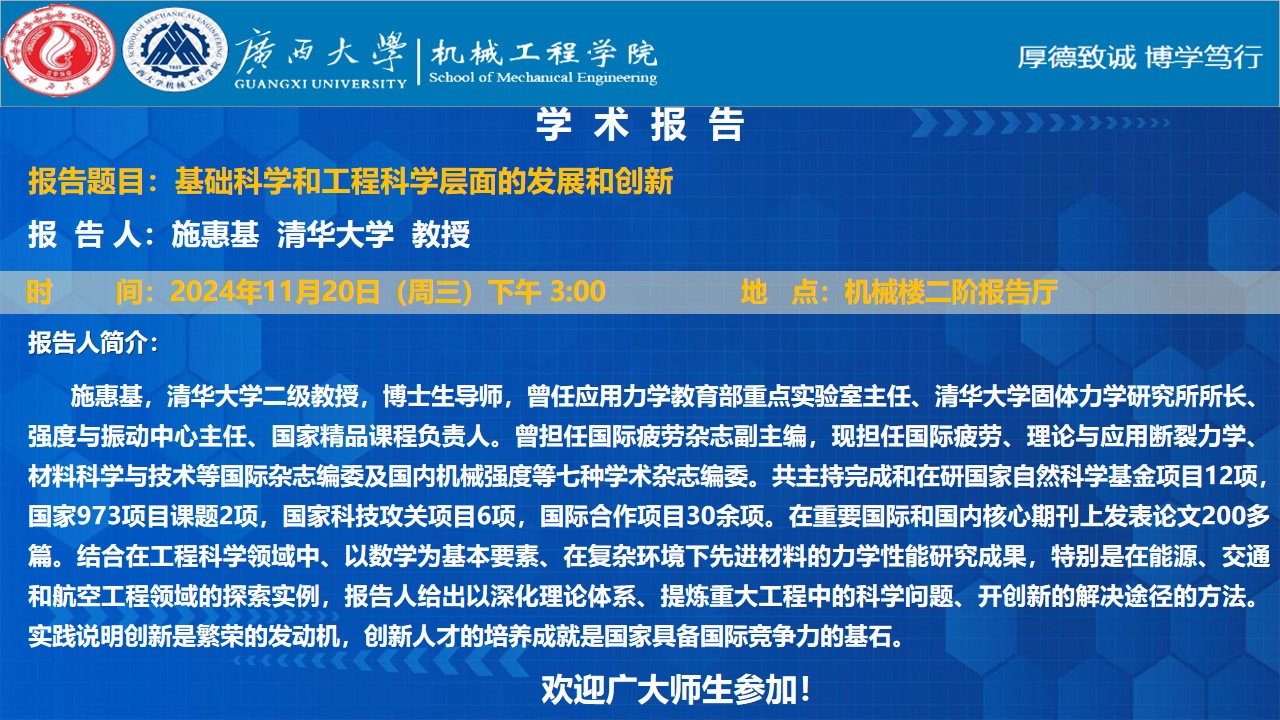 【机械工程学院学术报告】基础科学和工程科学层面的发展和创新