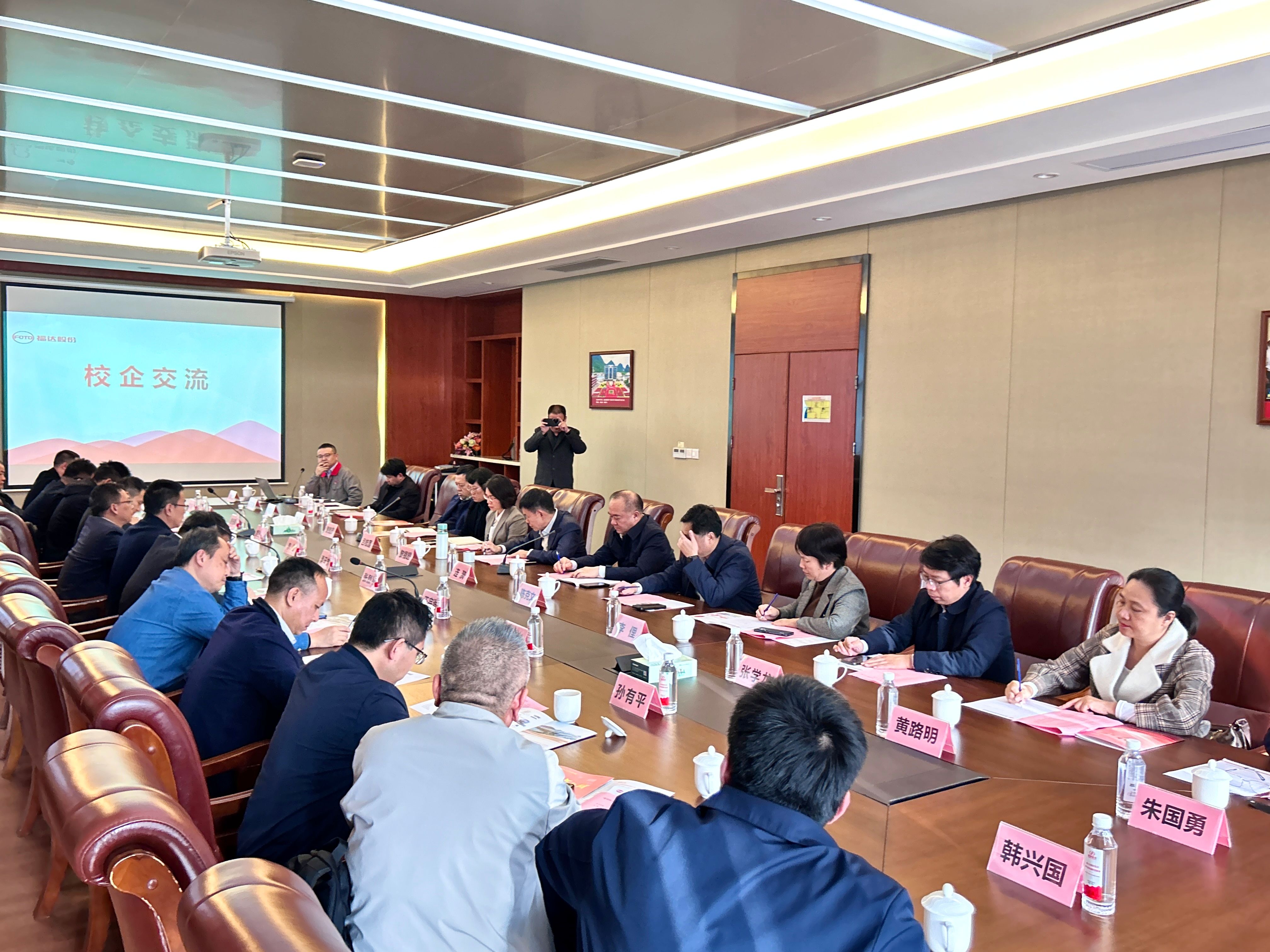 在桂林福达股份有限公司,董事长黎福超表示,福达股份正通过国际化战略和数智化技术的深度融合,迅速迈向智能制造新征程。高技能人才是福达事业的基础,自2025年起,公司将启动“福达双师千人计划”。在未来的合作中,希望能与高校合作共同培养出更多优秀的人才,为中华民族伟大复兴贡献更大的力量。校企双方回顾了多年的合作历程及成果,纷纷表示要深化拓宽合作的强烈愿望,并聚焦“共赢未来人才”“共享优势资源”“共建发展共同体”主题,就人才培养、科研合作、课程开发、学生就业等工作进行深入交流。