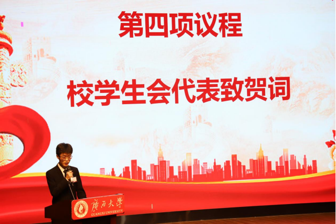“勤恳朴诚,厚学致新,为祖国奋斗到底!”大会尾声,所有与会成员全体起立,共同唱响《广西大学校歌》,大会在激昂的校歌中落下帷幕。