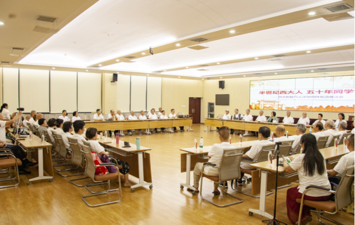 9月20日,校友们在我校校友服务中心会议厅举行座谈会,机械工程学院校友会执行会长黄德平、学院党委书记卢婵江出席本次座谈会。卢书记用一句“欢迎回家!”开场,赢得在场全体校友的热烈掌声。她向各位校友介绍了母校、母院近年来的发展和所取得的进步,感谢各位校友在投身建设祖国的洪流中充分展现作为西大人的能力和风采,在走过漫长而精彩的人生后仍心系母校和学院的发展的这份深情!时任班主任卢学东老师及任课教师代表周承意老师与各位校友们现场回忆当年的学习、生活趣事,畅谈人生体会。在一张张老照片的投影中,青春面容重现;银发同窗围坐,执手言欢。有人忆起恩师“如沐春风”的教诲;有人谈起同窗“偷摘校树芒果”的趣事。欢声笑语间,50年光阴仿佛倒流。在交流过程中,全体校友通过观看机械工程学院宣传片,回顾了母院近年来的变化与成就,并了解了学院未来的发展规划。校友们为此感到由衷的自豪,也对学院的未来充满期待。