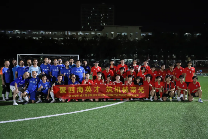 10月26日晚,广西大学东校园的绿茵场上灯火辉煌,一场跨越时光的足球友谊赛在此温情启幕。此次比赛,学院足球队队员们和机自90级,机自91级,机电92级,机电93级,铸造93级,机自93级,机专93级,机自96级,机自97级,机自01级,材料成型与控制工程02级,农机10级硕士等院友们齐聚一堂,以足球为纽带,共叙同窗情谊,传承机械精神。