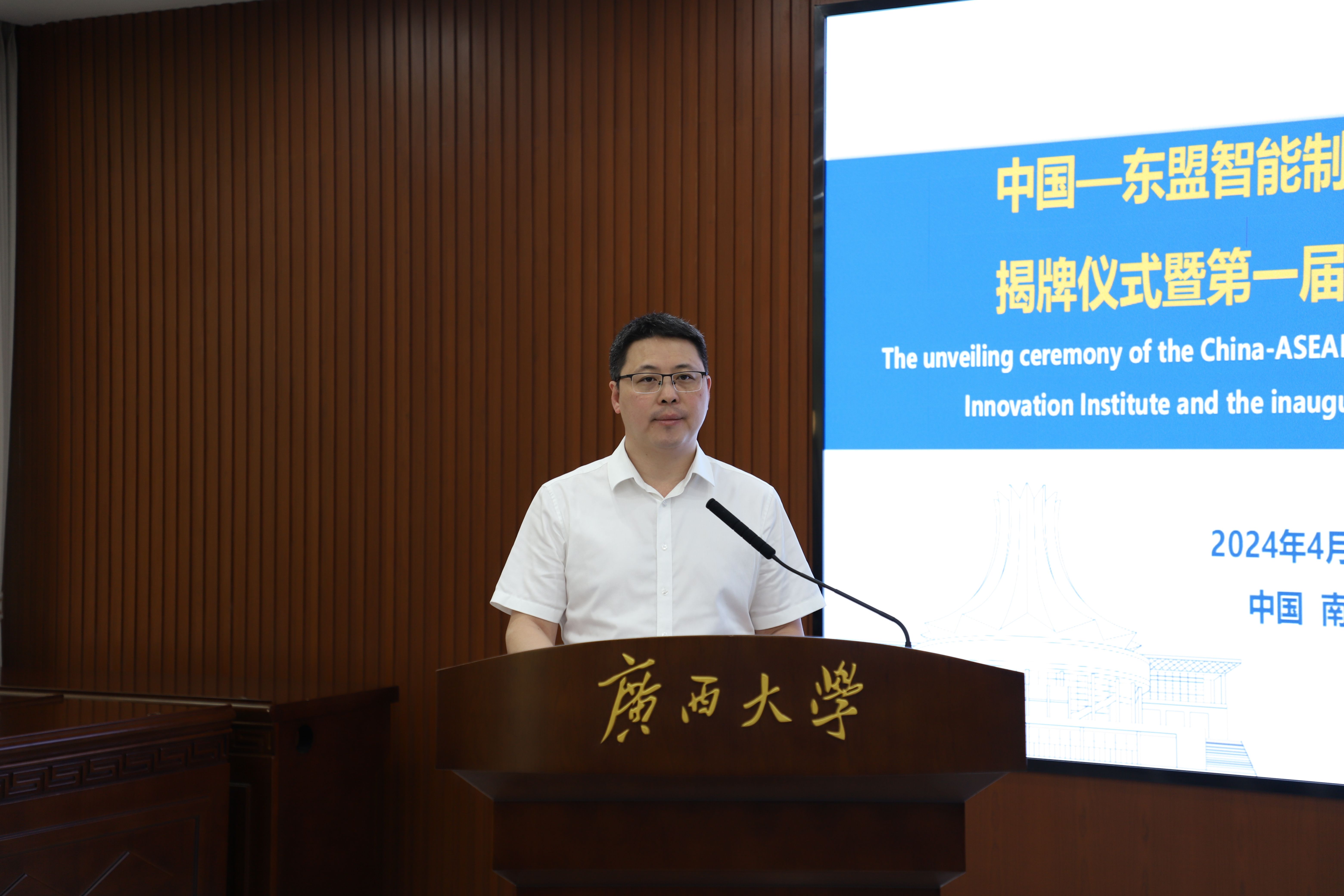 4月25日上午,由我院牵头的中国-东盟智能制造技术创新学院在我校揭牌成立。校党委常委、副书记马献力、自治区教育厅高教处处长兼学位管理与研究生教育处处长(自治区学位办主任)傅源方共同为技术创新学院揭牌。
